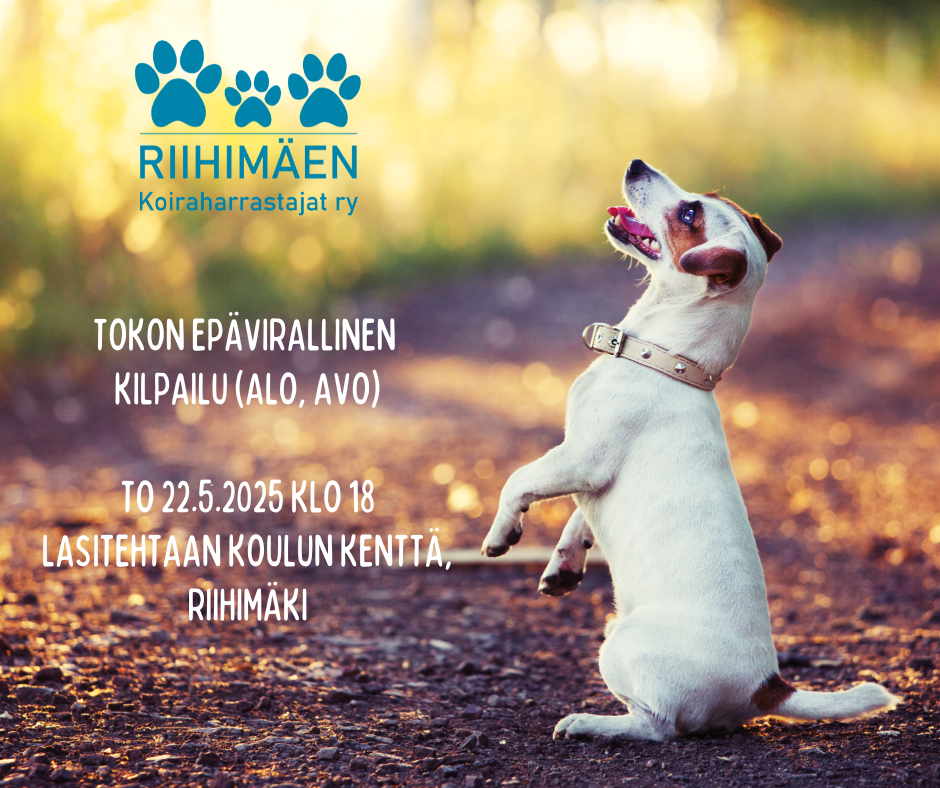 Tokon epäviralliset kisat (ALO, AVO). Tuomari: Anni Roiha, liikkeenohjaaja: Annika Hassinen. Ilmoittautuminen jäsenille 1. -10.5., ja ei-jäsenille 11.-18.5. Hinta 15 euroa jäsen / 20 euroa ei jäsen. Max. 10 koirakkoa. Paikka: Lasitehtaan koulun kenttä.