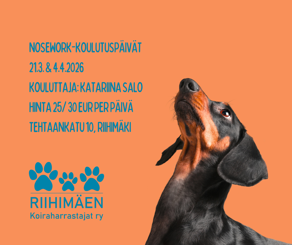 Tarvitsetko tukea noseworkin aloittamisessa tai etsintä- tai ilmaisutyöskentelyn vahvistamisessa? Riihimäen Koiraharrastajat järjestää kaksi Nosework koulutuspäivää (21.3. ja 4.4.) Katariina Salon johdolla. Nosework koulutuksessa harjoitellaan etsintää hydrolaatin, ruoan tai Kongin avulla. Saat myös opastusta koirasi ilmaisuun.